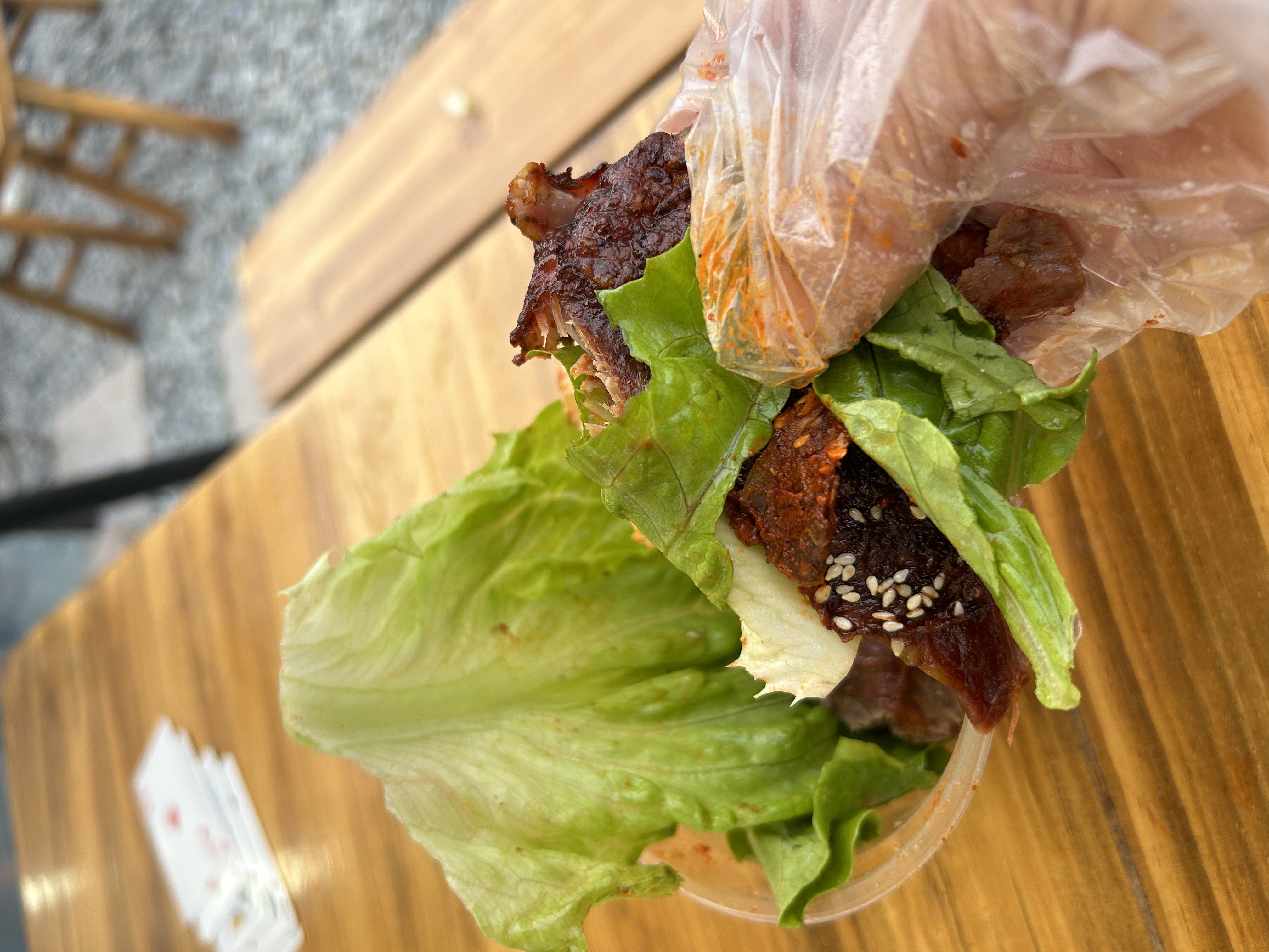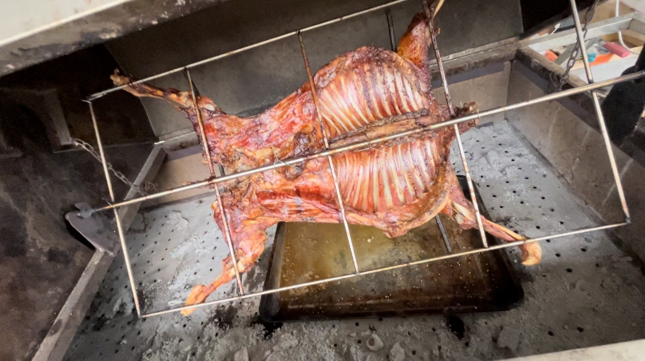 下午當大家抵達孔雀山莊,清新的空氣和自然的美景讓人瞬間放松下來(lái)??救蛟缫言谔刂频目炯苌献套套黜?,金黃色的外皮在炭火的烘烤下泛著(zhù)誘人的光澤,油脂不時(shí)地滴落在炭火上,濺起陣陣香氣。