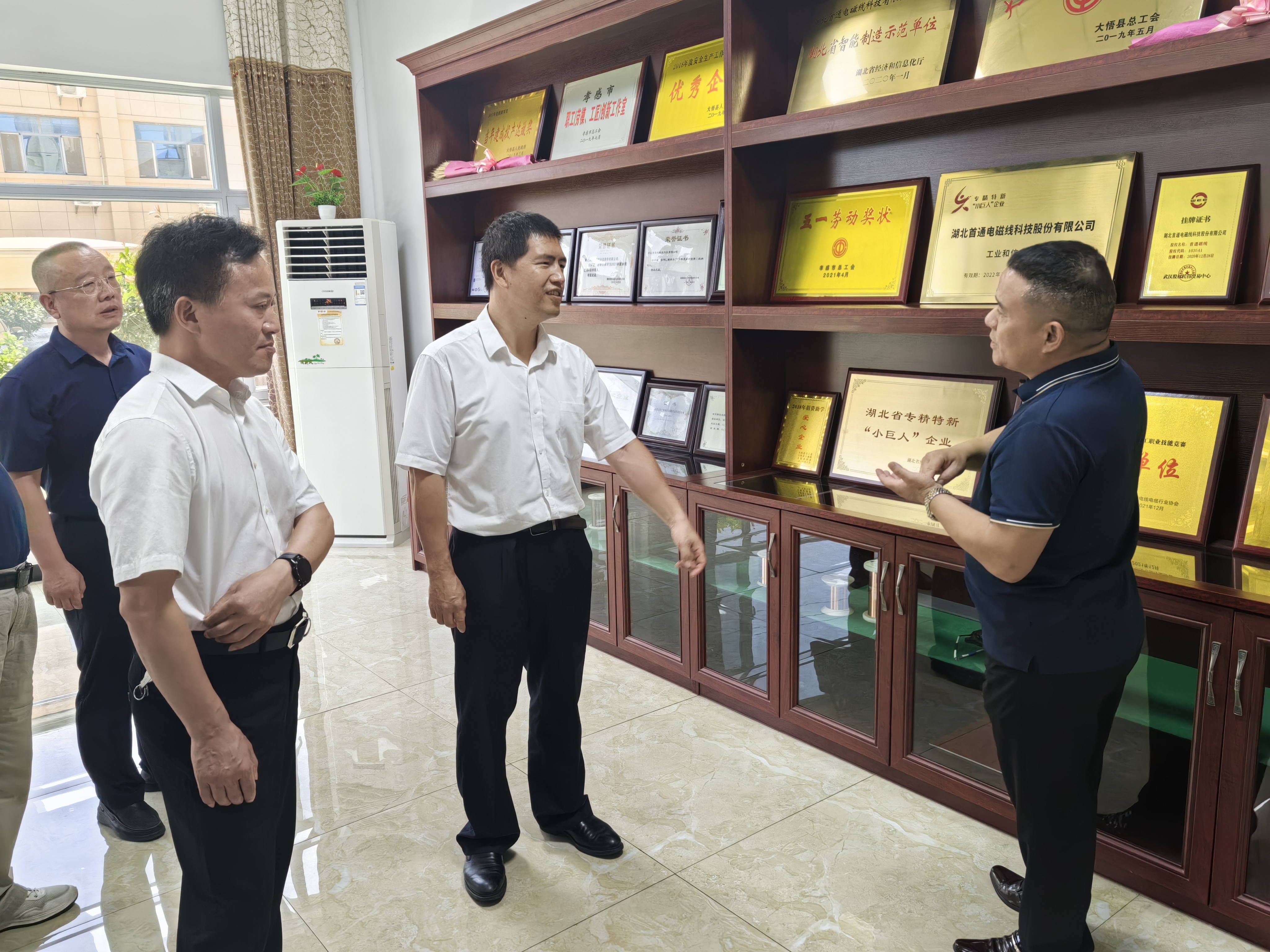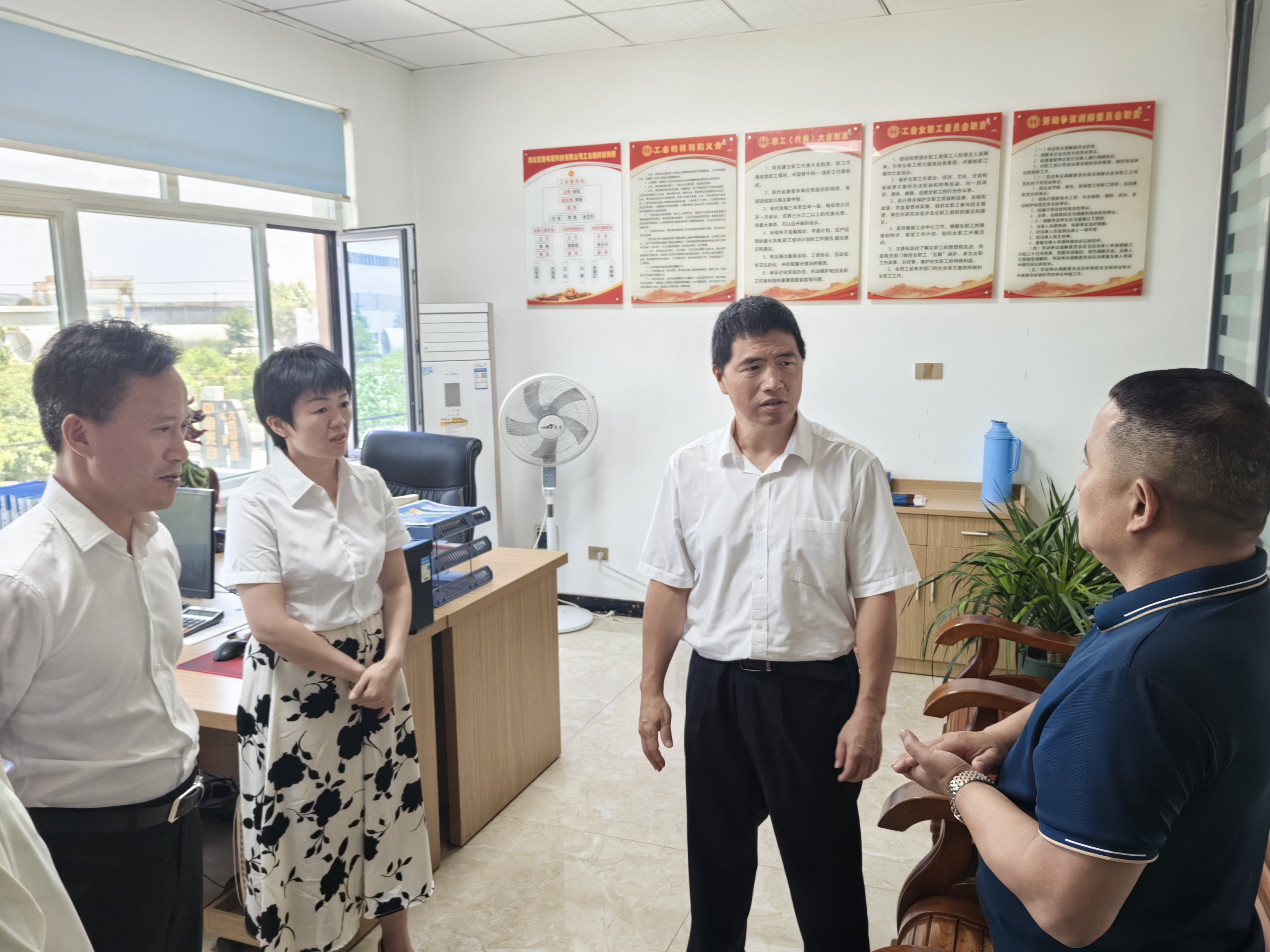 2023年7月5日上午 省、市總工會(huì )各級領(lǐng)導在大悟縣工會(huì )領(lǐng)導的陪同下,蒞臨我司開(kāi)展調研工作,公司黃總接待,省總工會(huì )主席胡甲文同志對我司工會(huì )開(kāi)展的集體協(xié)商工作夸獎?wù)f(shuō):“做的很不錯,企業(yè)想職工之所想,把職工的權益放在實(shí)際行動(dòng)上,才能更穩定更快速的發(fā)展?!辈⒂^(guān)了工會(huì )辦公室,公司宣傳欄,職工書(shū)屋、乒乓球、羽毛球、娛樂(lè )KTV室等。